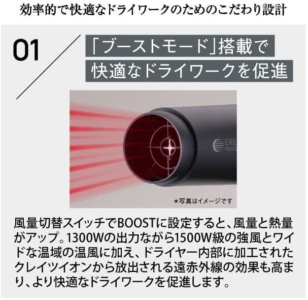 強風×ワイド温域×クレイツイオンのトリプル効果で、ブロードライワークを快適に。